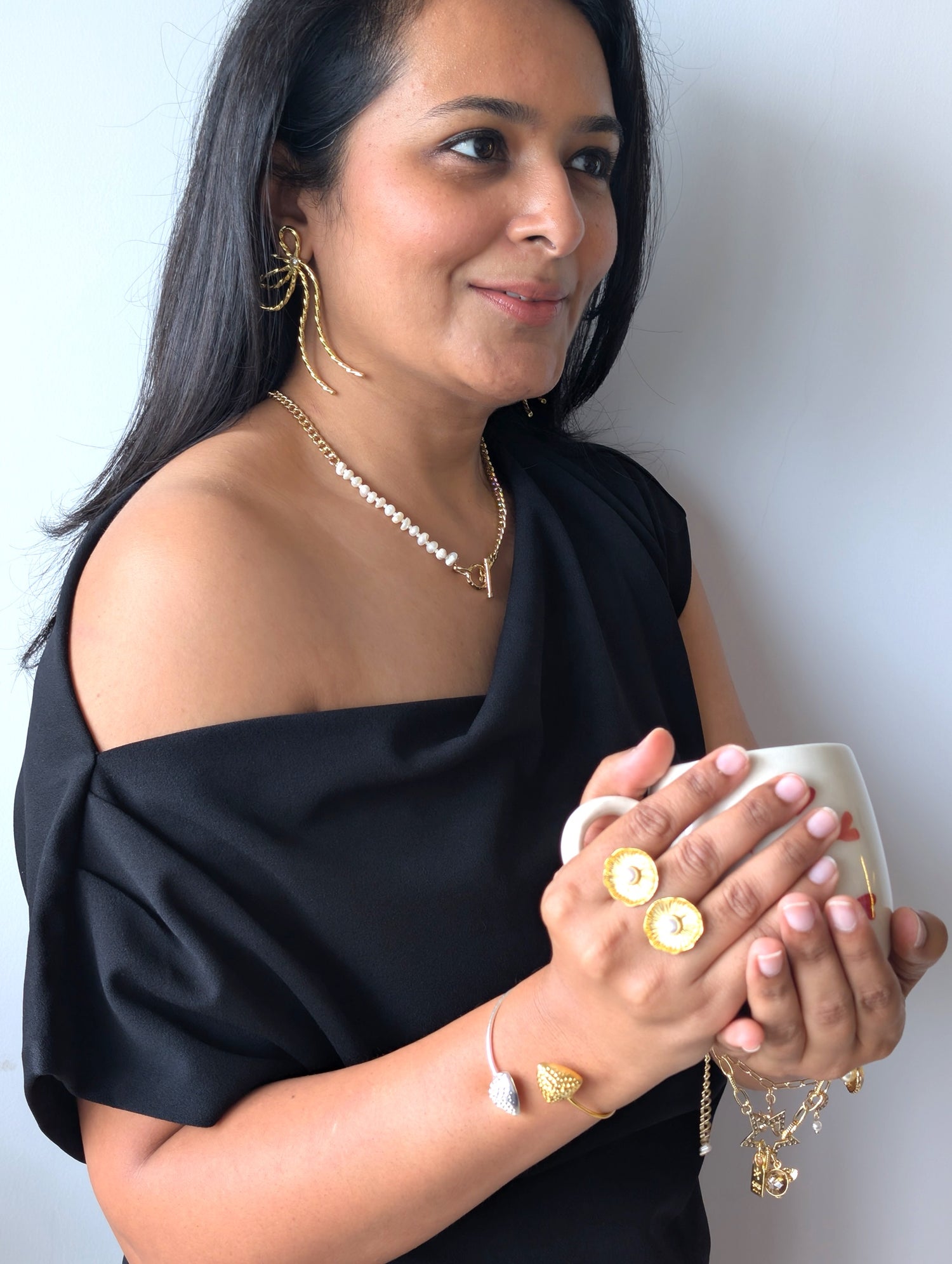 With a background in marketing at HUL, Janvi brings a keen eye for storytelling and brand-building to Araa. A lifelong jewelry enthusiast, she’s always believed that the right piece doesn’t just complete an outfit — it expresses who you are. Her vision for Araa was born from a love of everyday accessorizing and a drive to make sustainability both beautiful and accessible. At the heart of her work is a desire to offer pieces that feel fulfilling — ones that quietly empower, never overpower. Fun fact: she’s rarely met a piece of jewelry she didn’t want to take home.