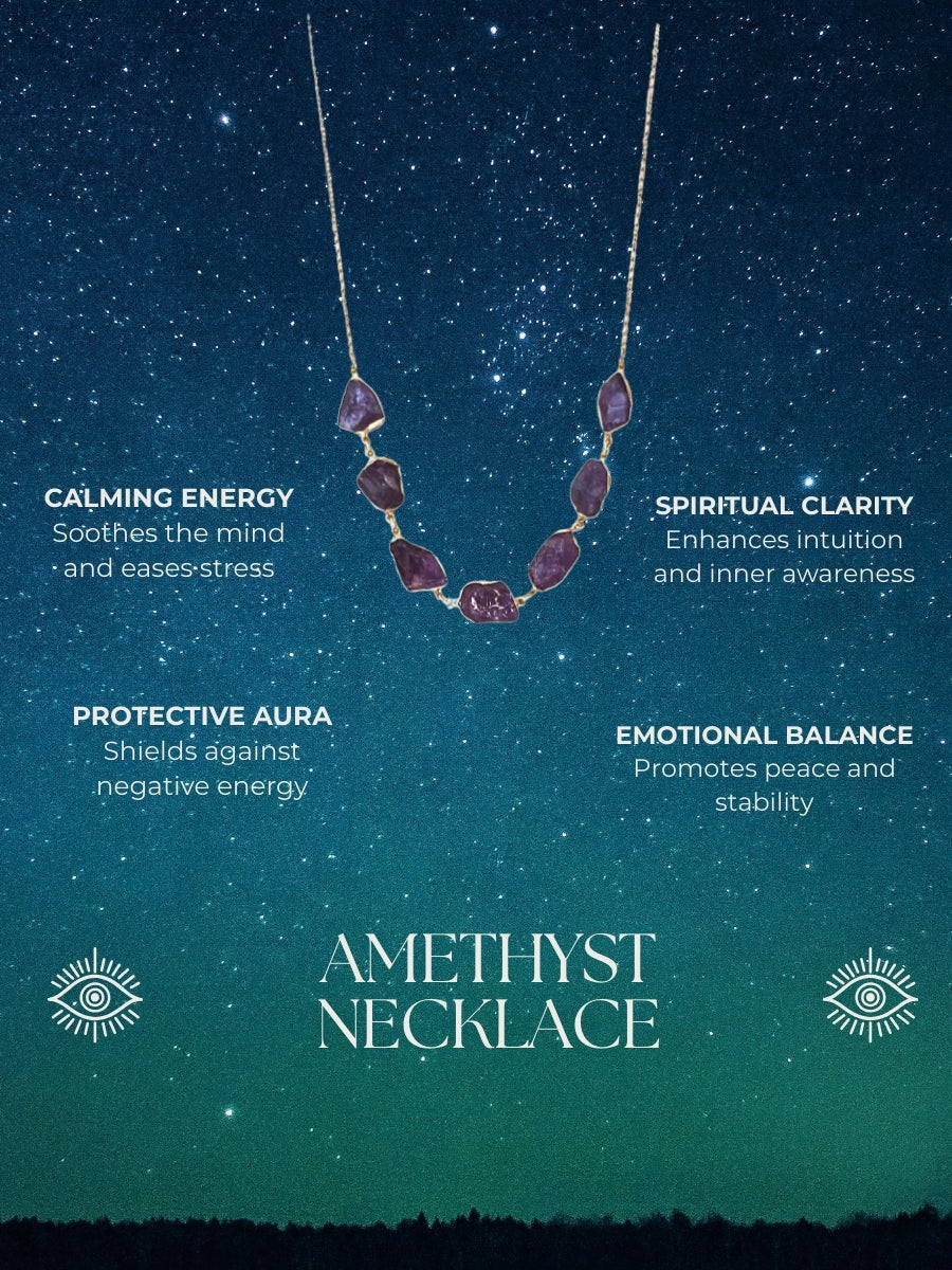 This necklace showcases raw lavender Amethyst stones on a delicate gold-brass chain, offering a natural yet elegant touch for any occasion.