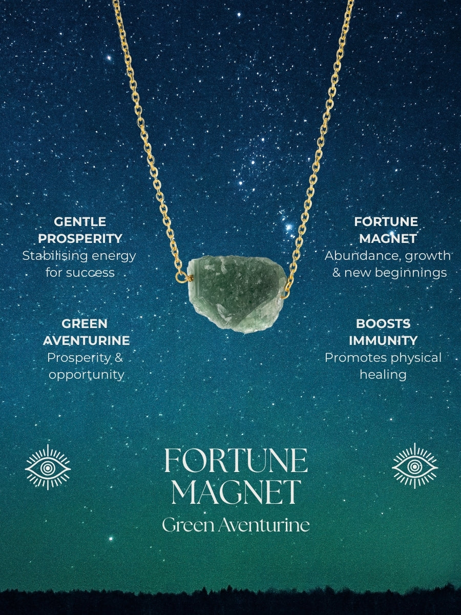 Green Aventurine has long been revered as a stone of prosperity and opportunity. This Fortune Magnet harnesses the crystal's natural energy to support abundance and positive transformation in your life. Believed to attract good fortune and encourage new beginnings, green aventurine carries a gentle, stabilizing vibration. Whether placed on your desk, altar, or carried with you, this piece serves as a daily reminder of your intentions for growth and success. A thoughtful addition to any crystal collection or a meaningful gift for someone embarking on a new chapter.