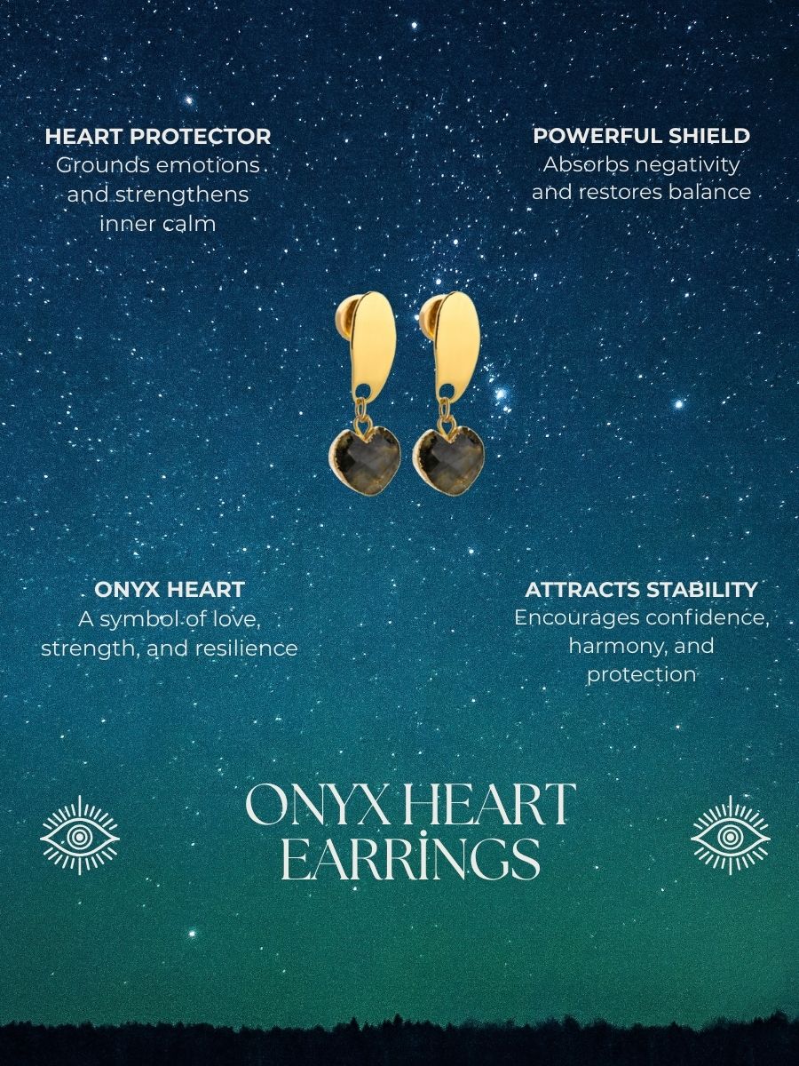 Elegant black onyx crafted in a heart shape, these earrings blends timeless charm with a bold, modern edge.